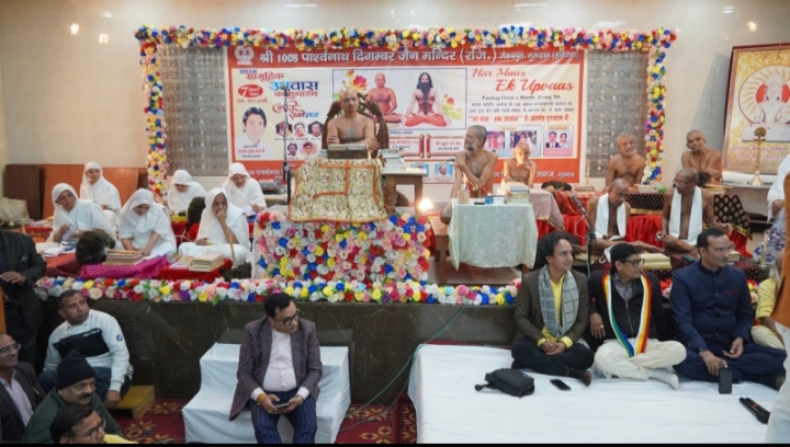 जैन समाज के प्रवक्ता अभय जैन एडवोकेट ने बताया कि आचार्य श्री 108 प्रसन्न सागर जी महाराज ने अपने प्रवचन में उपवास के महत्व को बताया। आचार्यश्री ने बताया कि मन की शुद्धि के लिए उपवास जरूर करना चाहिए। उपवास करने से शरीर के अशुद्ध विकास बाहर हो जाते हैं। आचार्यश्री ने कहा कि मन की शुद्धि के लिए उपवास जरूर करना चाहिए। उपवास करने से शरीर के अशुद्ध विकास बाहर हो जाते हैं। आचार्यश्री ने कहा कि मेरे आह्वान से आप सभी माह में एक उपवास जरूर करें। उपवास सिर्फ अन्न का ही नहीं, अपने भावों की शुद्धि के लिए किया जाता है।आचार्यश्री ने बताया कि सायं छह बजे के बाद तो पानी का भी उपयोग नहीं करना चाहिए। एक माह में एक उपवास जरूर करें। आचार्यश्री 108 प्रसन्न सागर जी महाराज ने अपने प्रवचनों के साथ-साथ भजनों, गीतों का श्रद्धालुओं को रसपान कराया। उन्होंने सुनाया-मेरा मन ये पुकारे आ जा-भक्ति के सहारे आजा…। तुम बिन हमरा कोई नहीं, भगवान तुम बिन हमरा कोई नहीं, मेरे देश की धरती सोना उगले उगले हीरे मोती…। आचार्य श्री 109 प्रसन्न सागर जी महाराज ने कहा कि हर माह की सात तारीख को उपवास जरूर करें।
