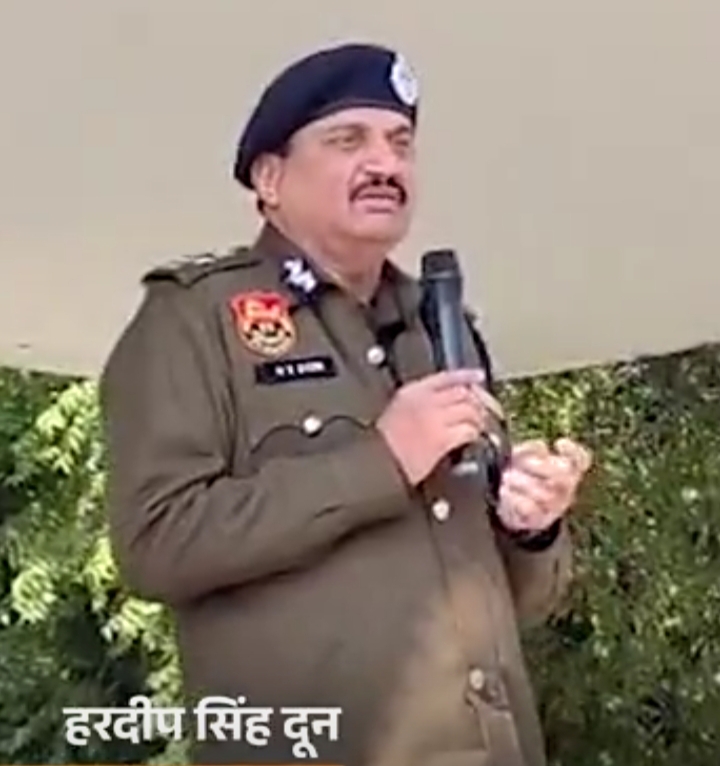 ADGP हरदीप सिंह दून पुलिस लाइन में मंच पर पुलिसकर्मियों को संबोधित कर रहे हैं। तभी उनकी नजर जूती पहने एक पुलिसकर्मी पर पड़ती है। दून कहते हैं, “ये जूती कैसे पहना हुआ है? इसको सस्पेंड करो, व्हाट नॉनसेंस, कौन है इंचार्ज,ACP को बोले- यू आर गजेटेड ऑफिसर: तभी दून अधिकारी की तरफ इशारा करते हुए कहते हैं कि “आप देखते नहीं हैं कि कैसे जूती पहनकर ड्युटी पर आया है। उसने जूती, जैकेट पहन रखी है, ऐसे थोड़ी होता है।” दून पूछते हैं, “ACP कहां हैं आपके?” तभी ACP आते हैं।