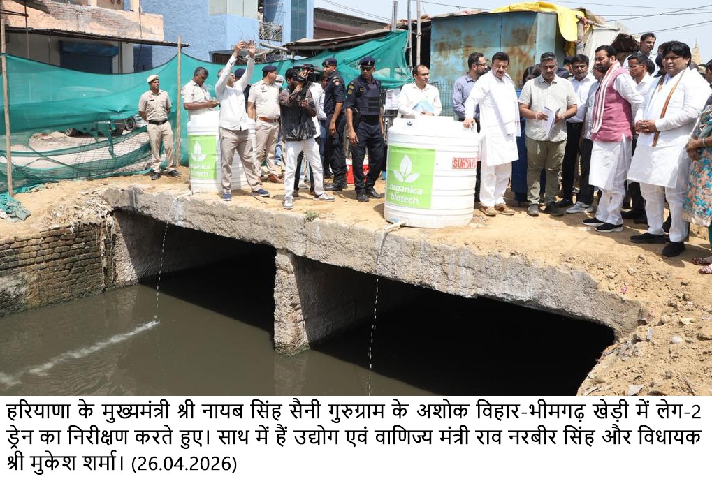 मुख्यमंत्री ने रविवार की दोपहर अशोक विहार-भीमगढ़ खेड़ी के समीप से गुजर रही लेग-2 ड्रेन का निरीक्षण किया। उन्होंने लेग-2 ड्रेन के गंदे पानी को साफ करने के प्रयासो के बारे में विस्तार से जानकारी ली। उन्होंने अधिकारियों को निर्देश दिए इस ड्रेन की सफाई निरंतर होनी चाहिए तथा इसके पानी के नियमित रूप से सेंपल लिया जाए। साथ ही ड्रेन के दोनों किनारों की सफाई कर इसका सुदृढ़ीकरण भी किया जाए।
