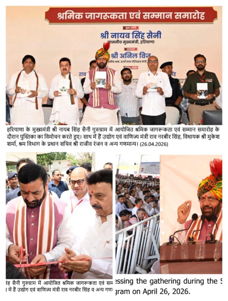 इस अवसर पर उद्योग मंत्री राव नरबीर सिंह ने कहा कि किसी भी देश की प्रगति उसके श्रमिकों की मेहनत पर निर्भर करती है और हरियाणा भी अपने श्रमिकों के परिश्रम के बल पर औद्योगिक और आर्थिक क्षेत्र में तेजी से आगे बढ़ रहा है। उन्होंने कहा कि राज्य सरकार श्रमिकों के कल्याण और उनके परिवारों के भविष्य को सुरक्षित करने के लिए निरंतर प्रयासरत है। कार्यक्रम में जनप्रतिनिधियों, अधिकारियों और भारतीय मजदूर संघ के पदाधिकारियों सहित अनेक गणमान्य व्यक्ति उपस्थित रहे।